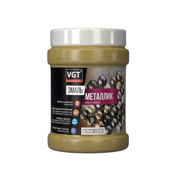 Эмаль акриловая ВД-АК-1179 VGT универсальная "МЕТАЛЛИК" золото 0,23кг (неморозостойкая)