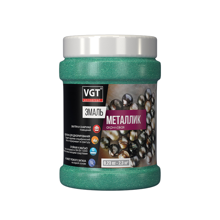 Эмаль акриловая ВД-АК-1179 VGT универсальная "МЕТАЛЛИК" изумруд 0,23кг (неморозостойкая)