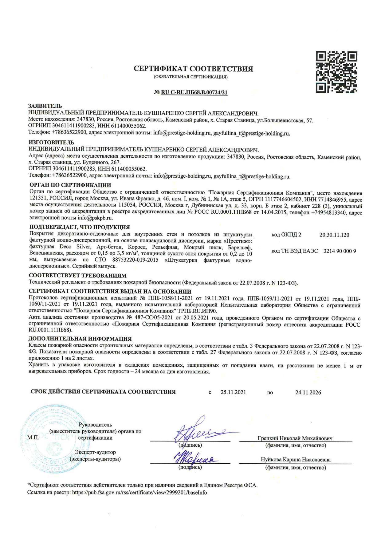 Штукатурка акриловая ПРЕСТИЖ DECO SILVER серебристая 2,5 кг