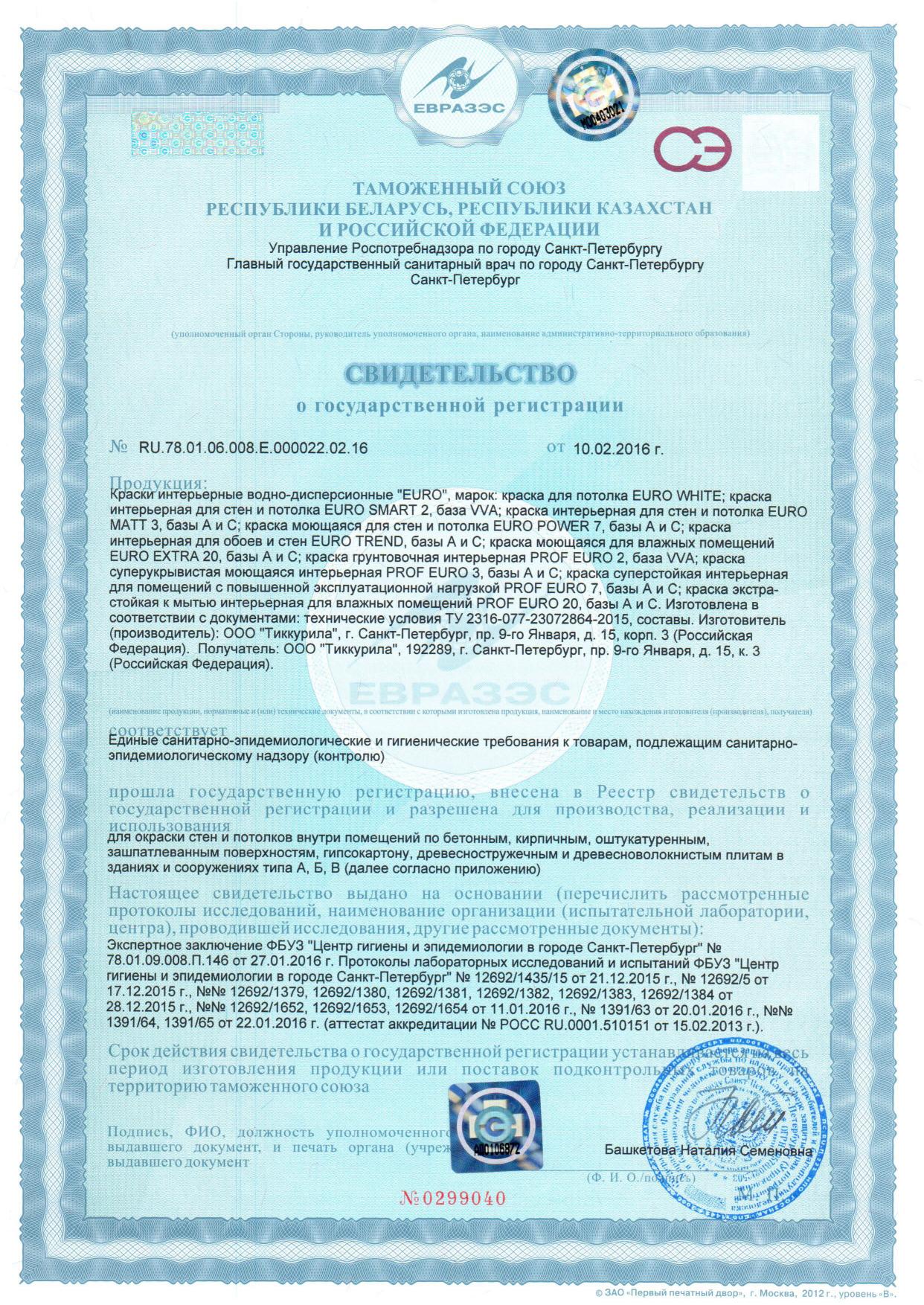 Краска TIKKIVALA Euro Smart 2 интерьерная глубокоматовая 2,7л