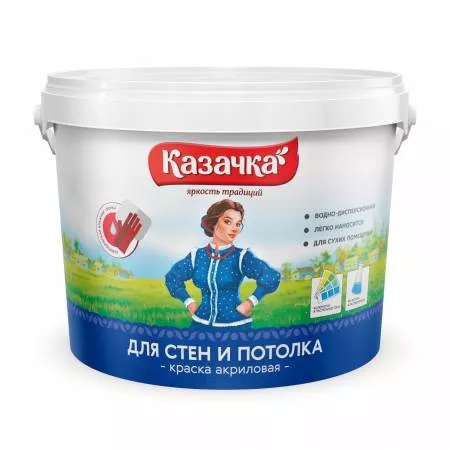 Краска КАЗАЧКА ВД-АК для стен и потолка (W3) 13кг