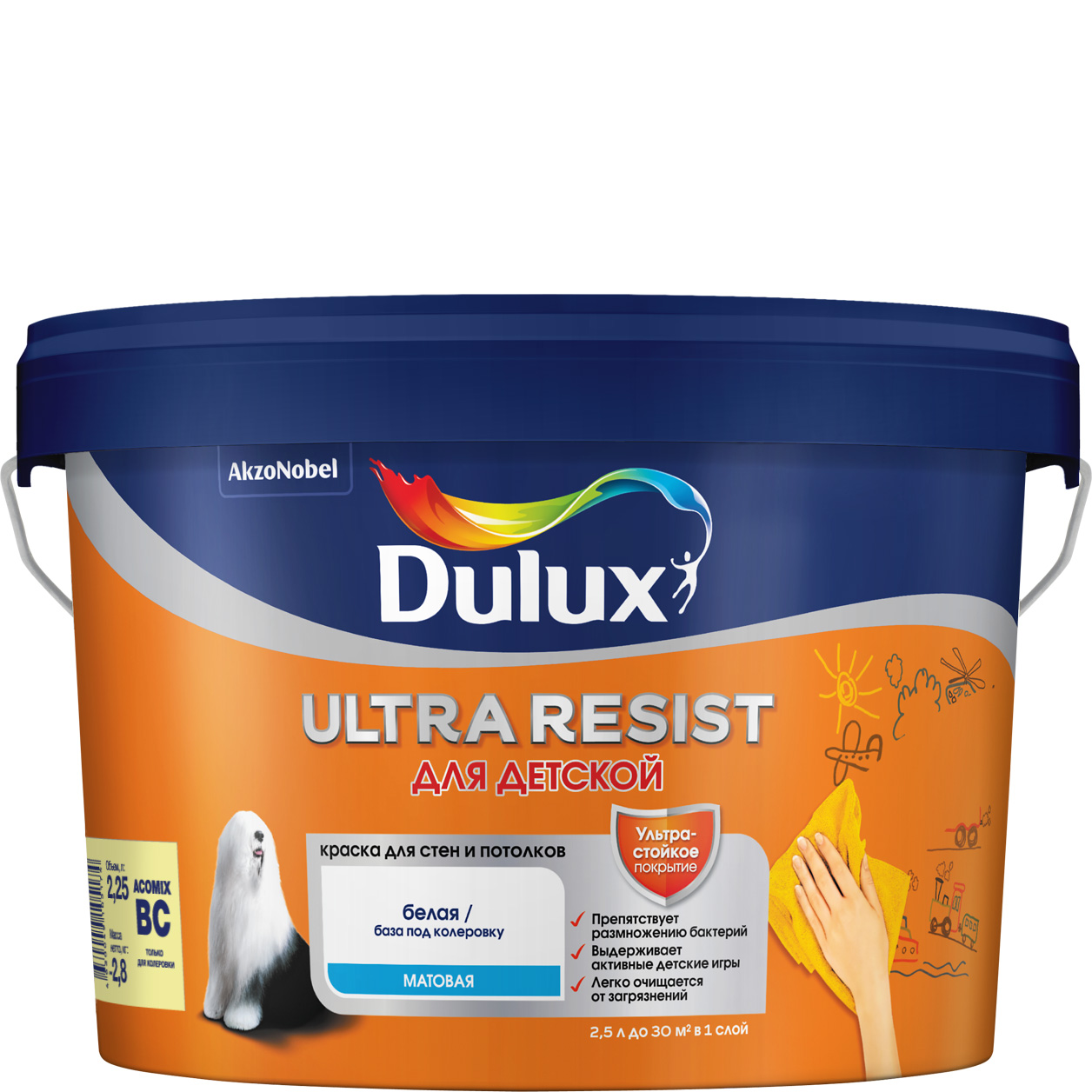 Краска ВД DULUX Ultra Resist база BC 2,25л для детской матовая