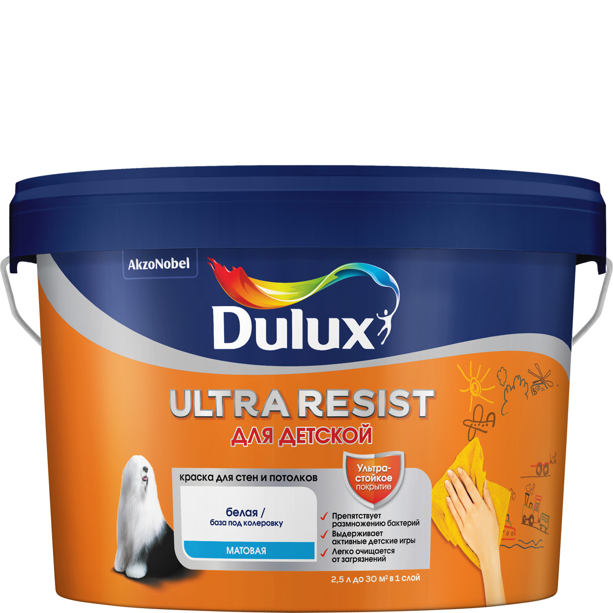 Краска ВД DULUX Ultra Resist база BW 2.5л для детской матовая