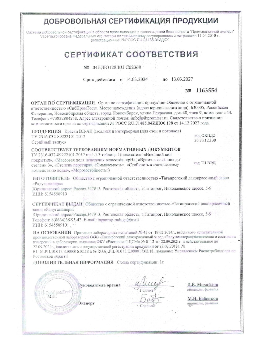 Краска предназначена для окраски стен и потолков внутри сухих помещений по бетонным, оштукатуренным, гипсокартонным, кирпичным, деревянным поверхностям, кроме металлических. Применяется для окраски обоев. Также может применяться для отделочных работ в помещениях детских и лечебно-профилактических учреждений.