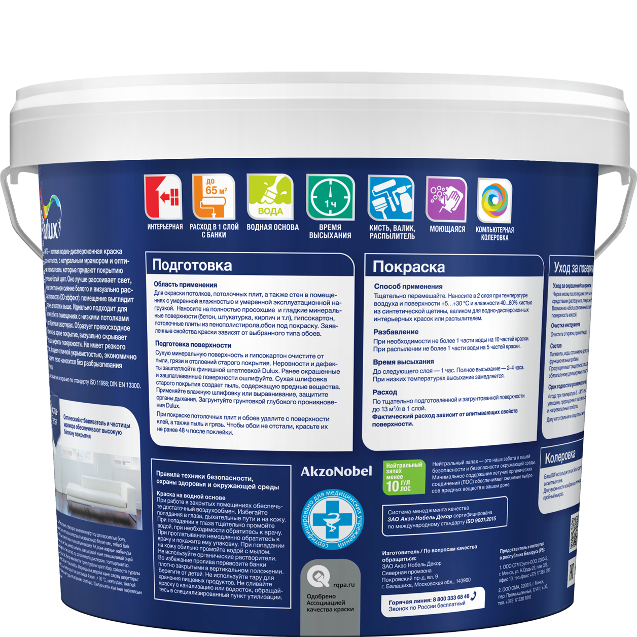 Добавить поверхностьДля внутренних работ. Подходит для нанесения на полностью просохшие и гладкие минеральные поверхности (бетон, штукатурка, кирпич и т. п.), гипсокартон, обои под покраску. Рекомендуется для окрашивания помещений с умеренной влажностью, таких как спальни, гостиные, кладовки, кабинеты, подсобные помещения. Особенно рекомендуется для окраски помещений в малогабаритных квартирах с низкими потолками. Сертифицирована для применения в детских и лечебно-профилактических учреждениях.