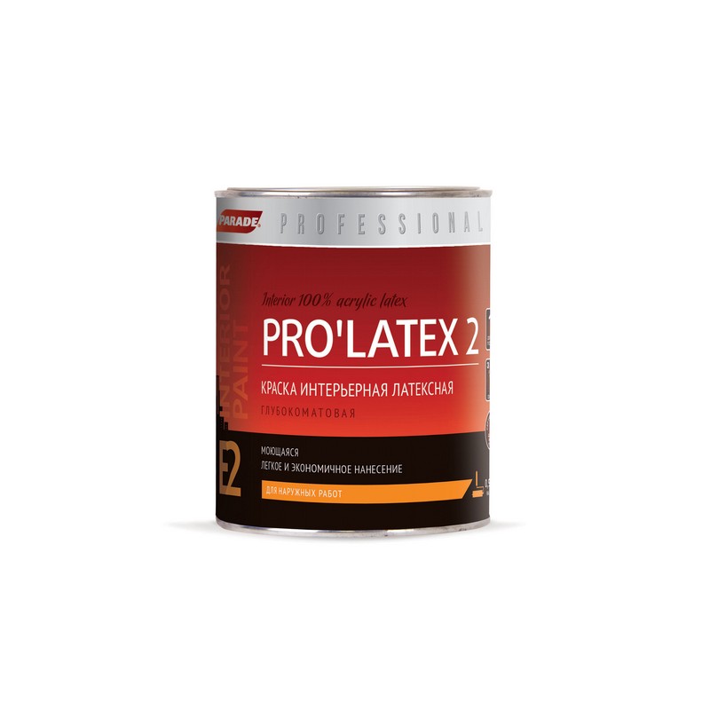 Краска PARADE PRO'LATEX E2 база А 0,9л матовая