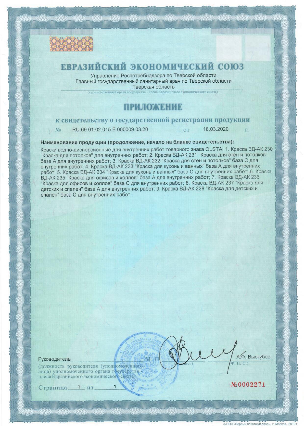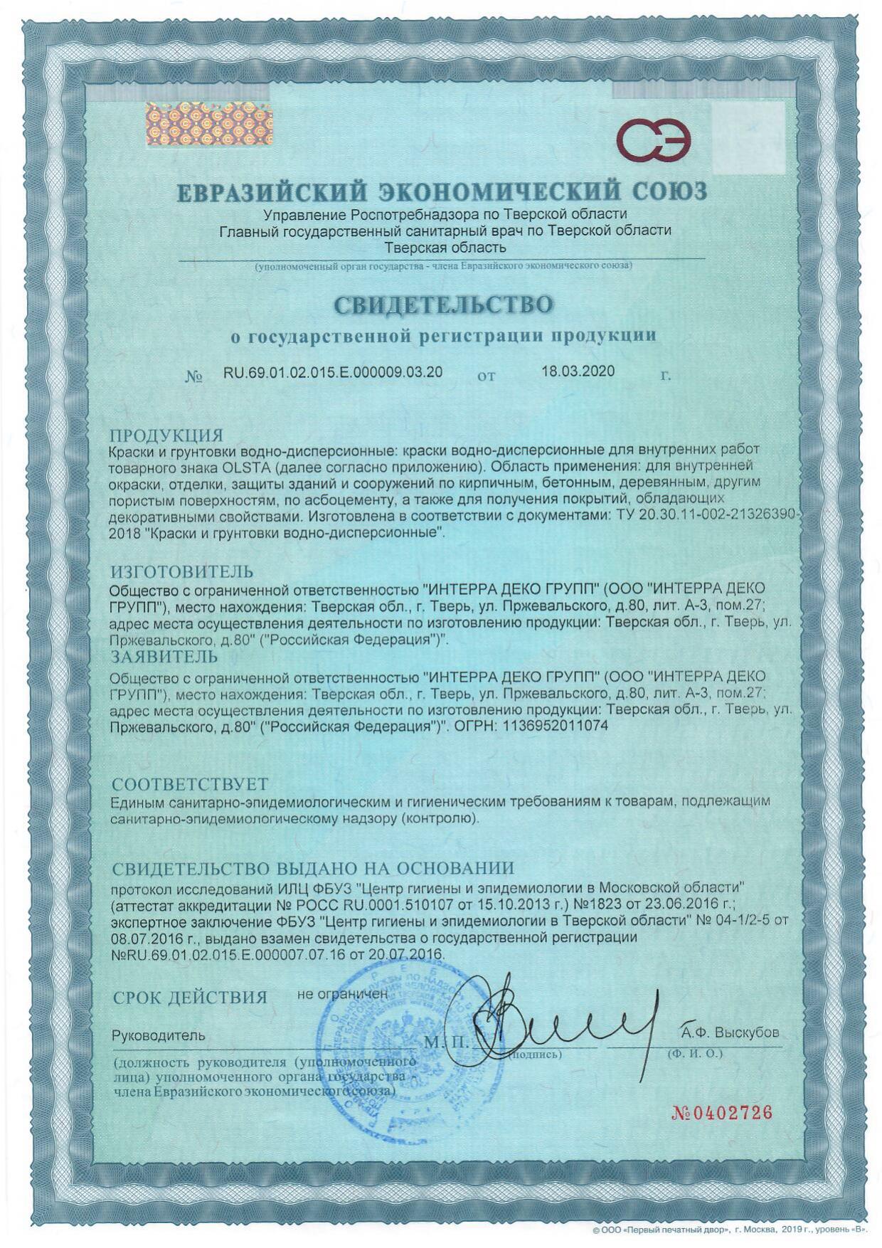 Краска OLSTA WALL&CEILING для стен и потолков интерьерная матовая база А 0,9 л