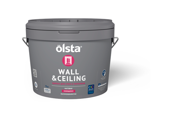 Краска OLSTA WALL&CEILING для стен и потолков интерьерная матовая база А 9 л