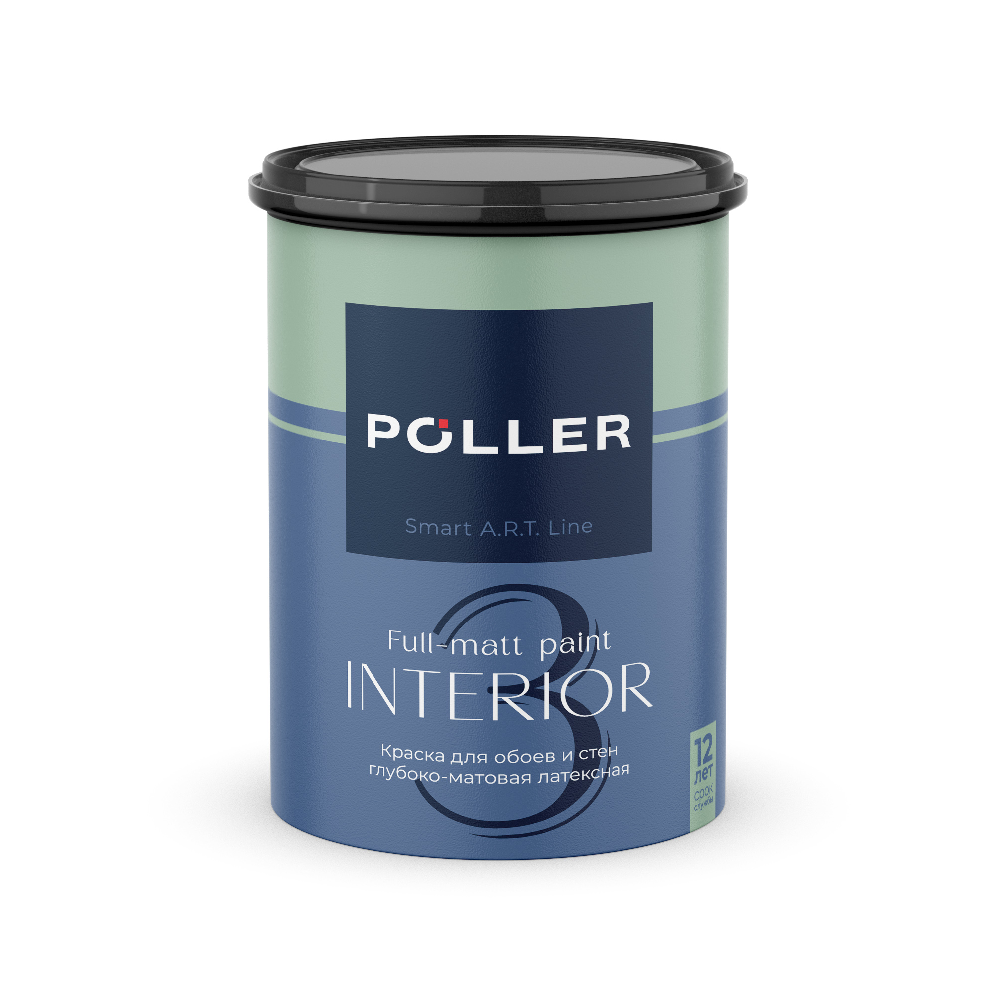 Краска Poller A.R.T. латексная глубокоматовая для обоев и стен 3 База А белая 0,9л