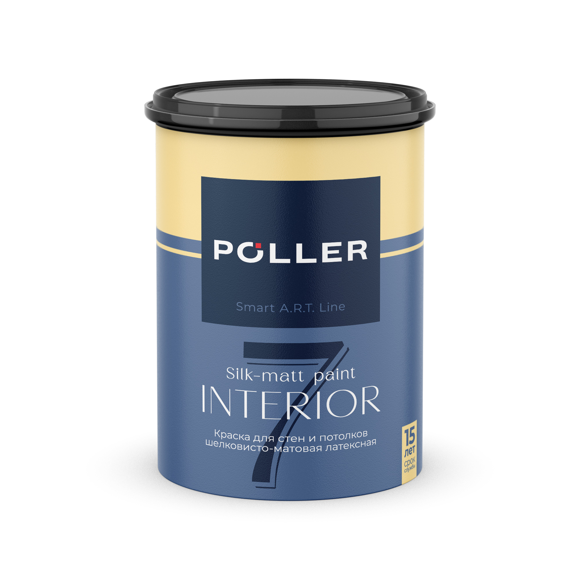 Краска Poller A.R.T. латексная шелковисто-матовая для стен и потолков 7 База А белая 0,9л