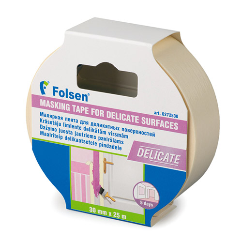 Лента малярная для деликатных поверхностей 30ммх25м Folsen