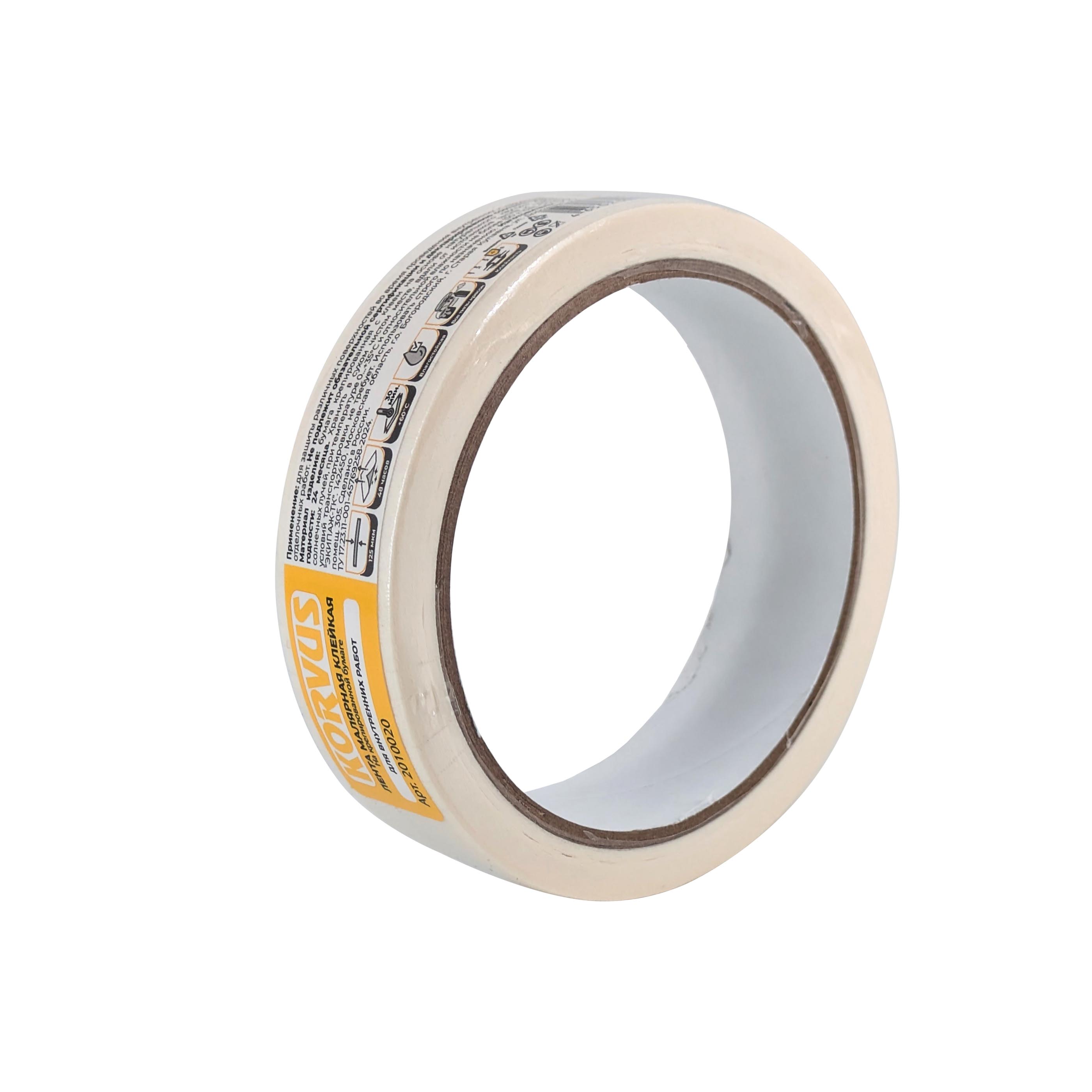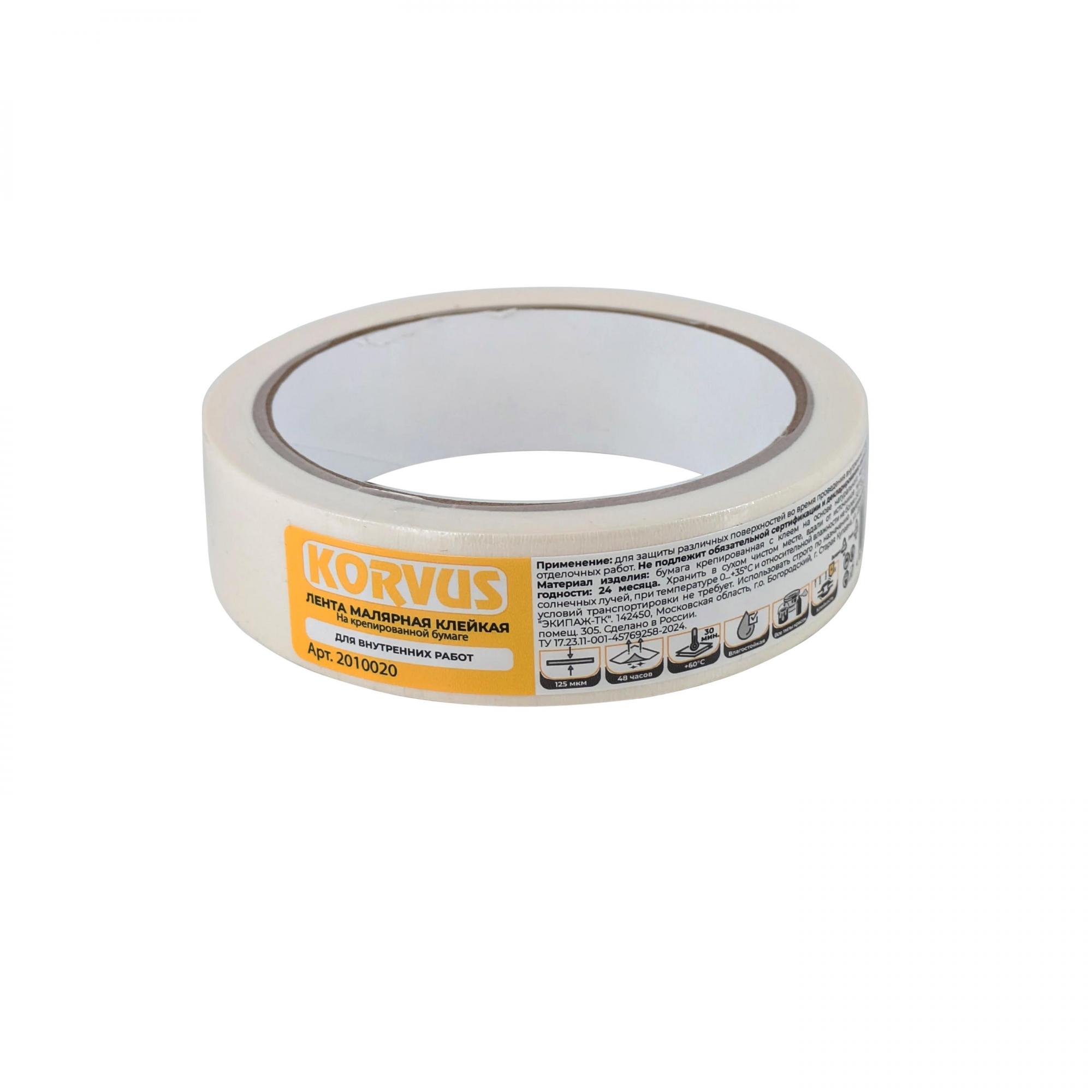 Лента малярная клейкая на крепированной бумаге, 25мм х 20м KORVUS