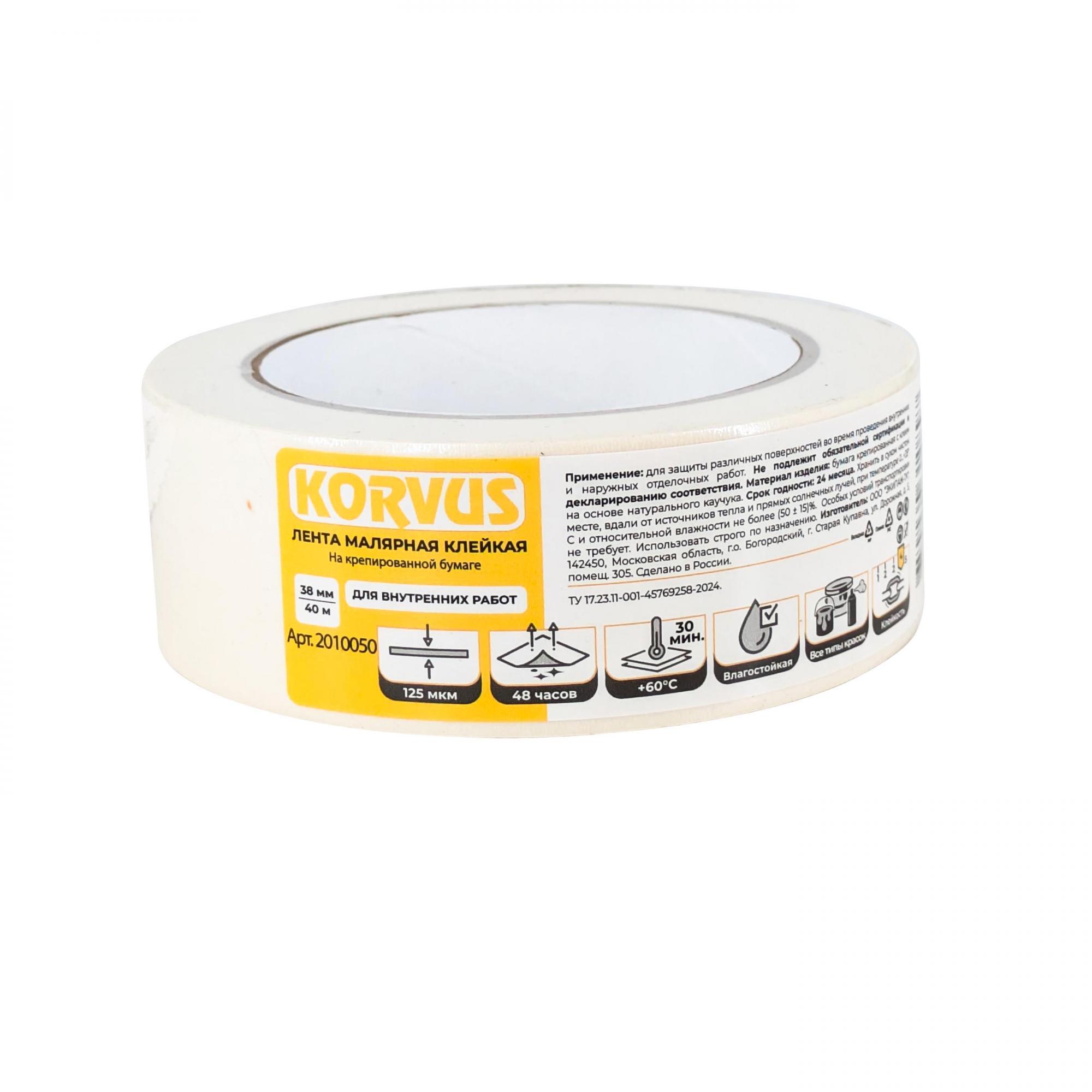 Лента малярная клейкая на крепированной бумаге, 38мм х 40м KORVUS