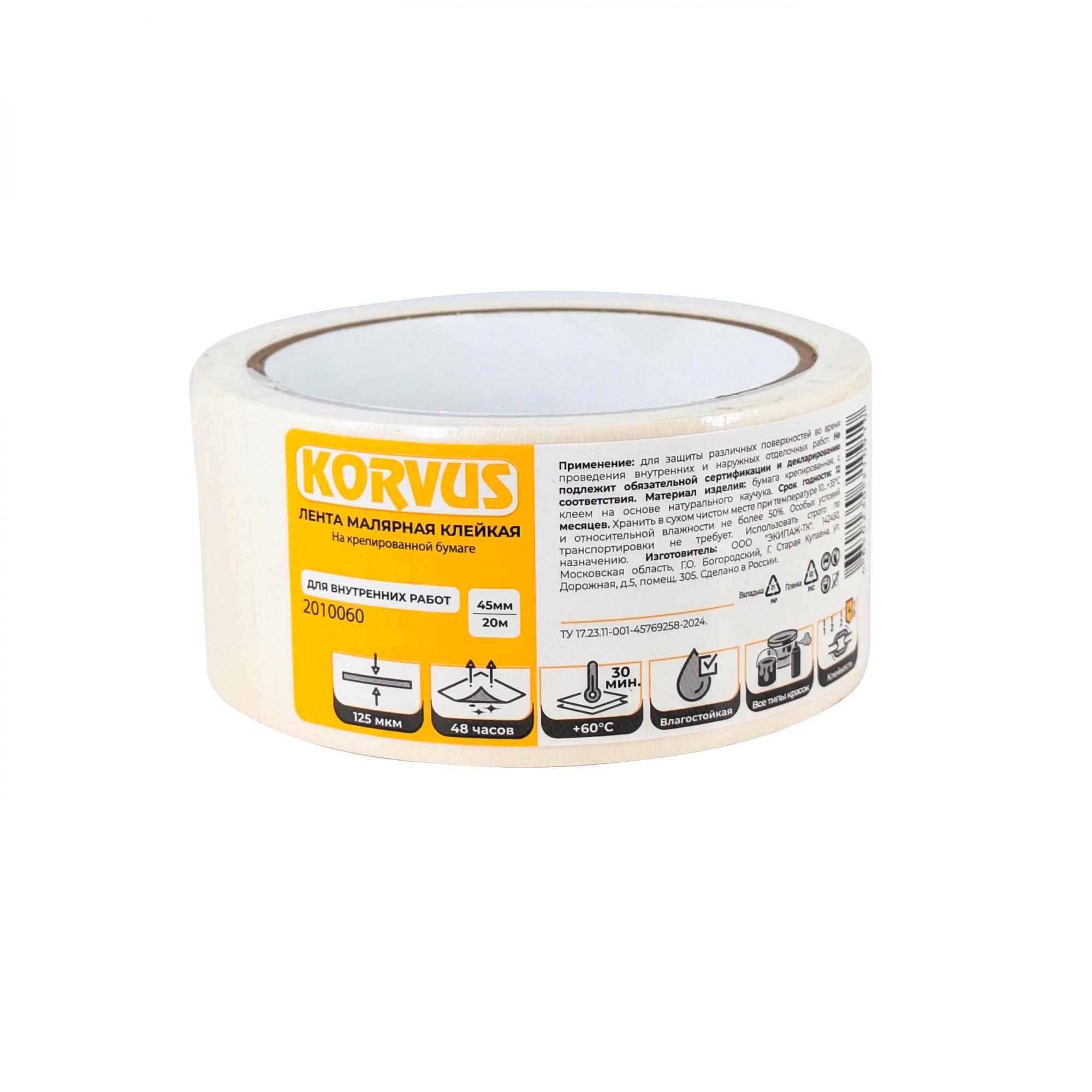 Лента малярная клейкая на крепированной бумаге, 45мм х 20м KORVUS