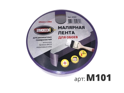Лента малярная STMDЕCOR 25 мм х 25 м, фиолетовая, для обоев