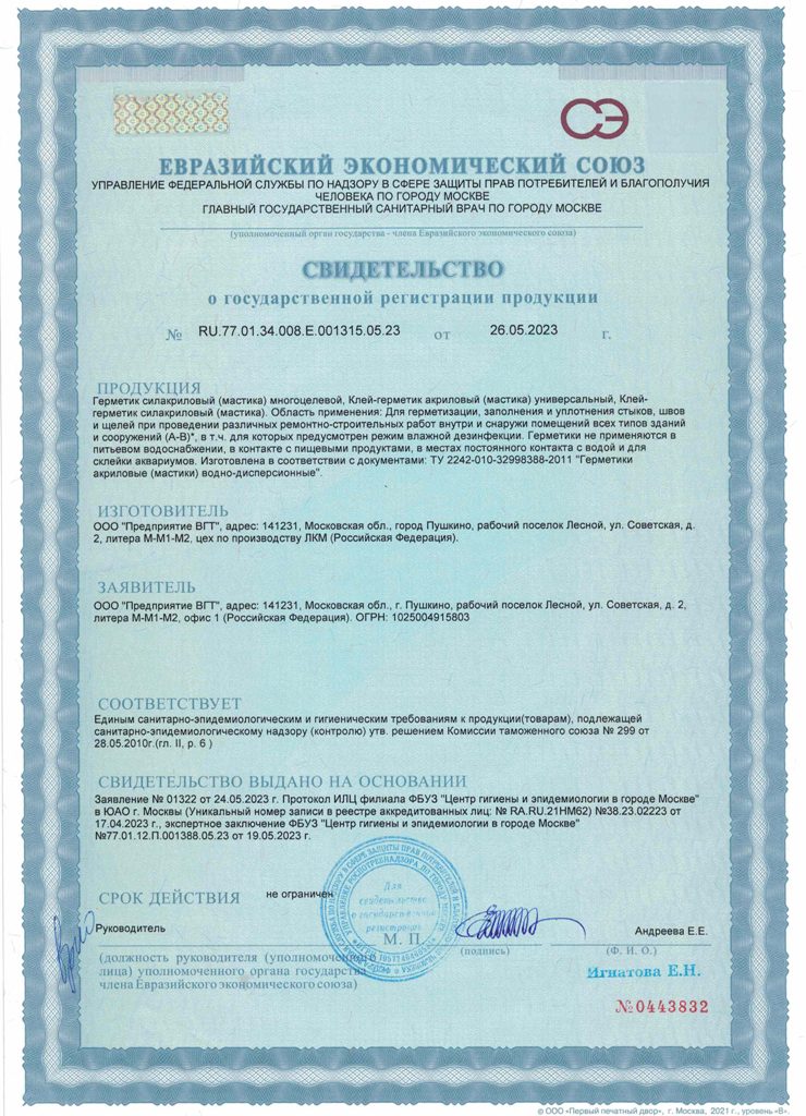 Клей-герметик (мастика) акриловый универсальный VGT белый 0,28кг картридж
