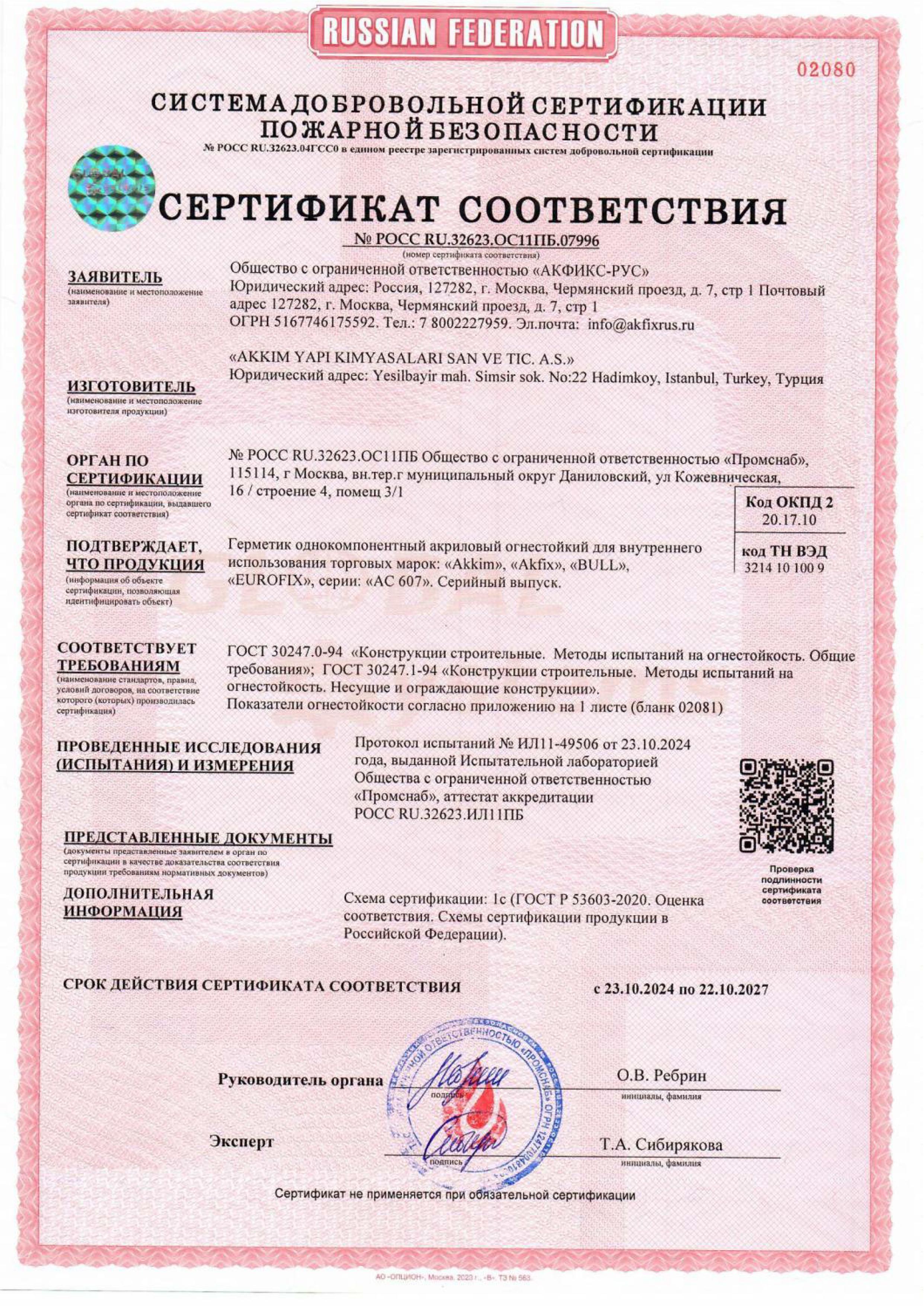 Герметик акриловый огнестойкий Akfix АС607 белый 310мл