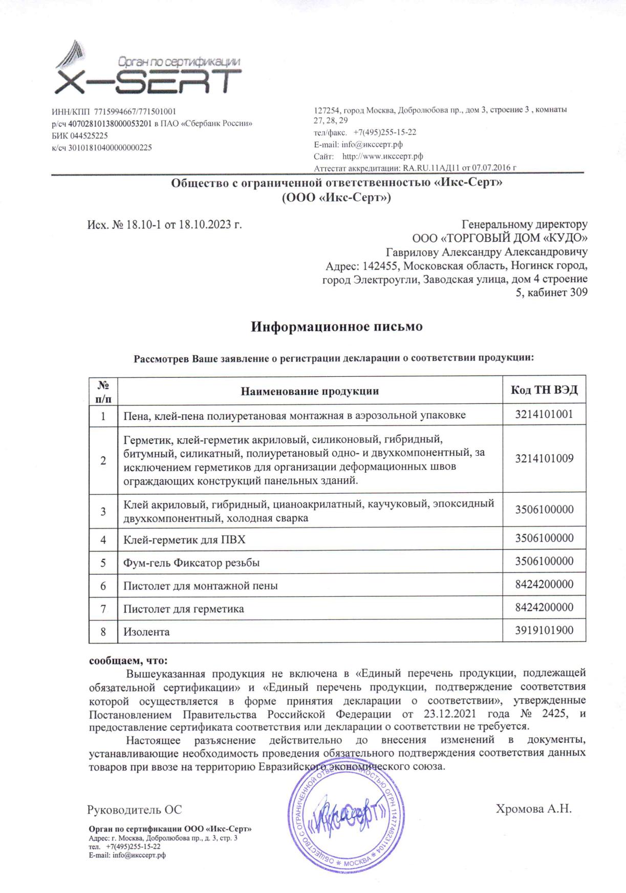 Герметик акриловый пароизоляционный наружный KUDO PROFF белый 280мл