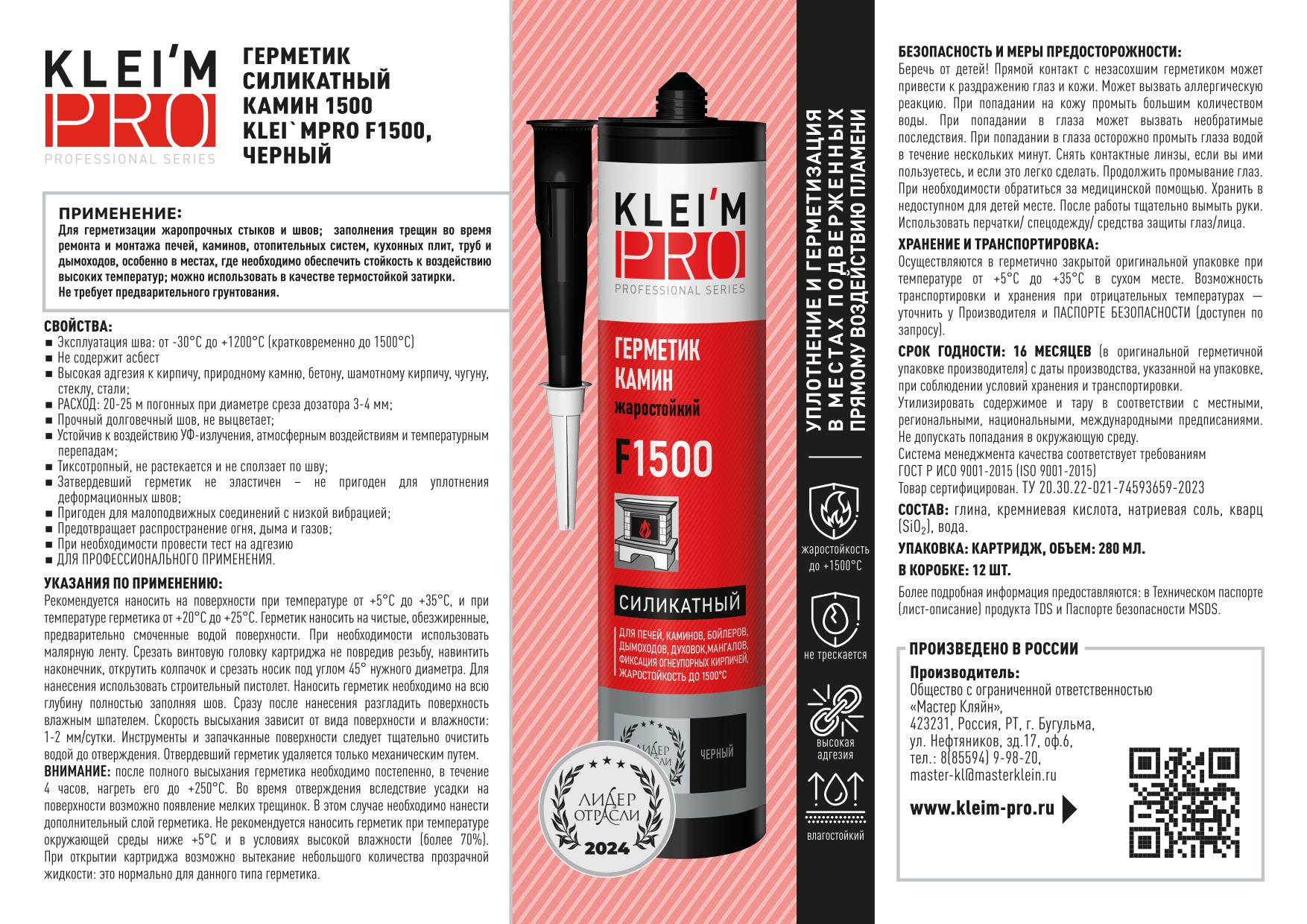 Герметик силикатный для печей и каминов KLEI`MPRO Камин 1500 черный 280мл
