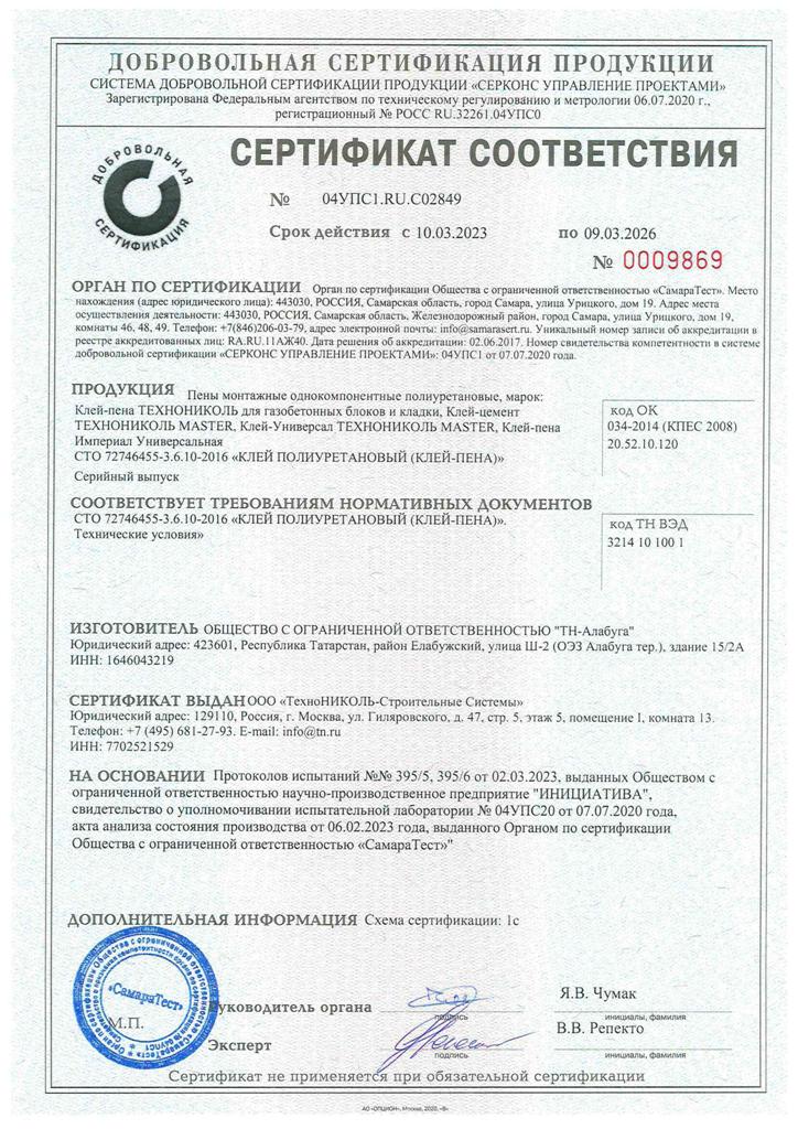 Клей-пена для газобетонных блоков и кладки ТЕХНОНИКОЛЬ 900г