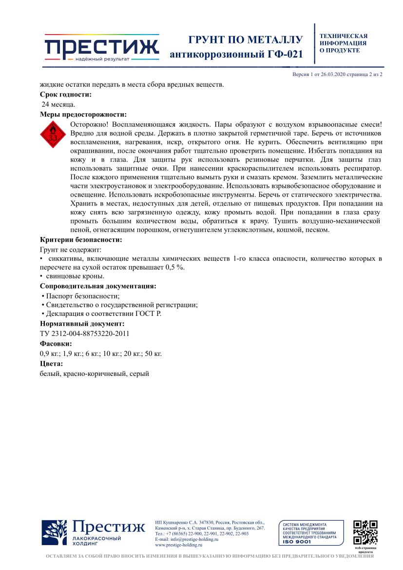 Грунт ПРЕСТИЖ ГФ-021 серая 1,9 кг
