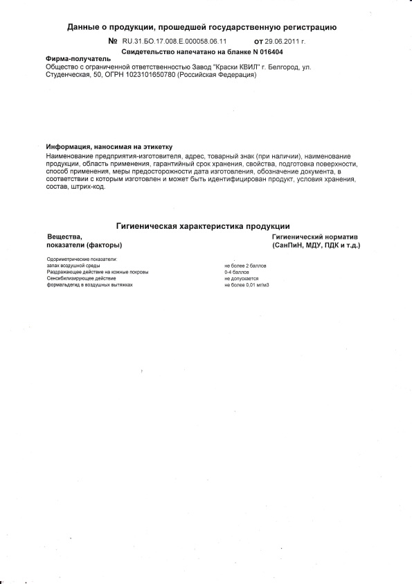Добавить поверхностьСвойства: покрытие обладает хорошей адгезией и защитными свойствами, устойчиво к изменению температуры от -45 до +60°С