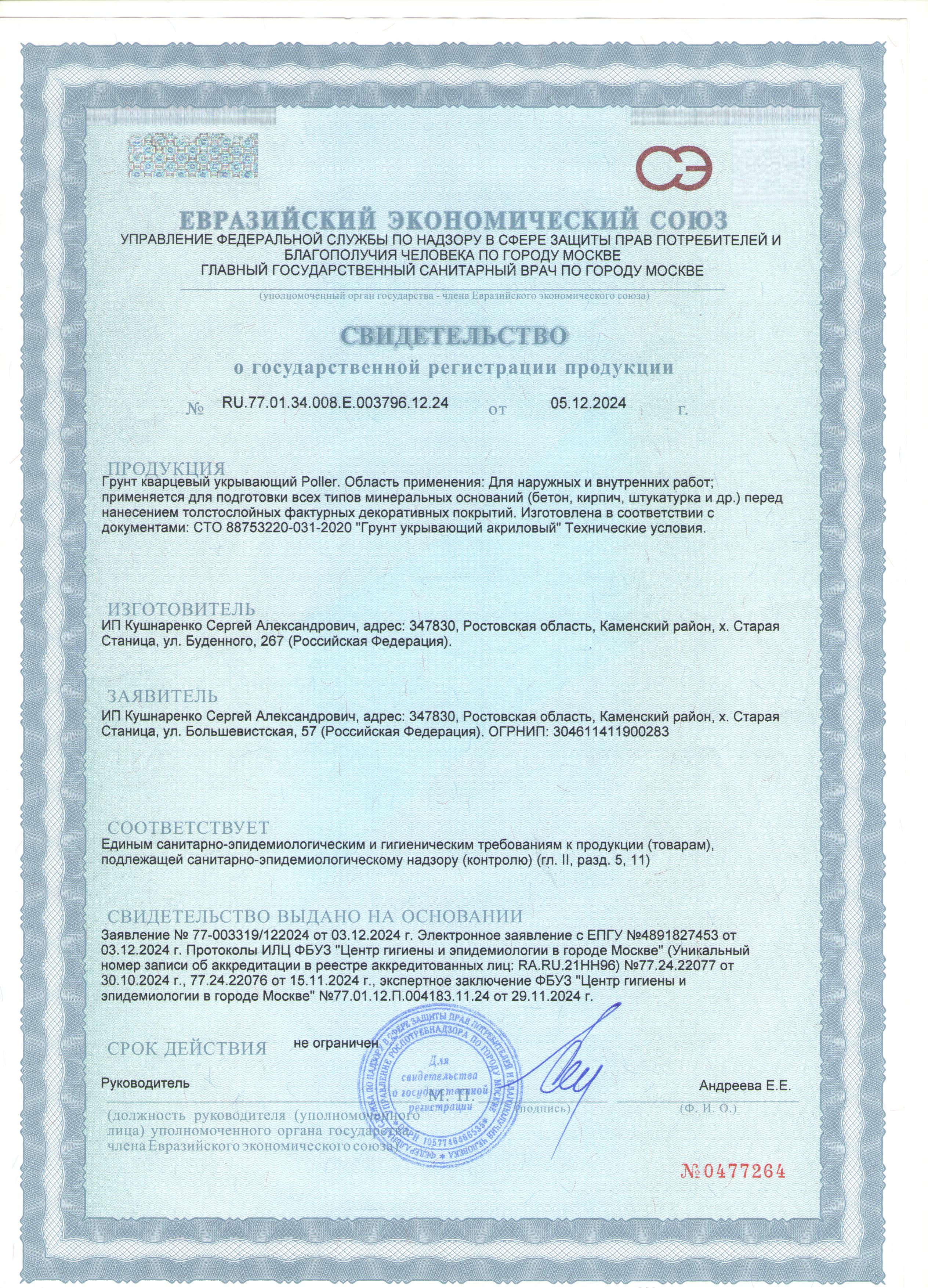 Грунт кварцевый укрывающий PRIMER QUARTZ Poller A.R.T. белый 4л