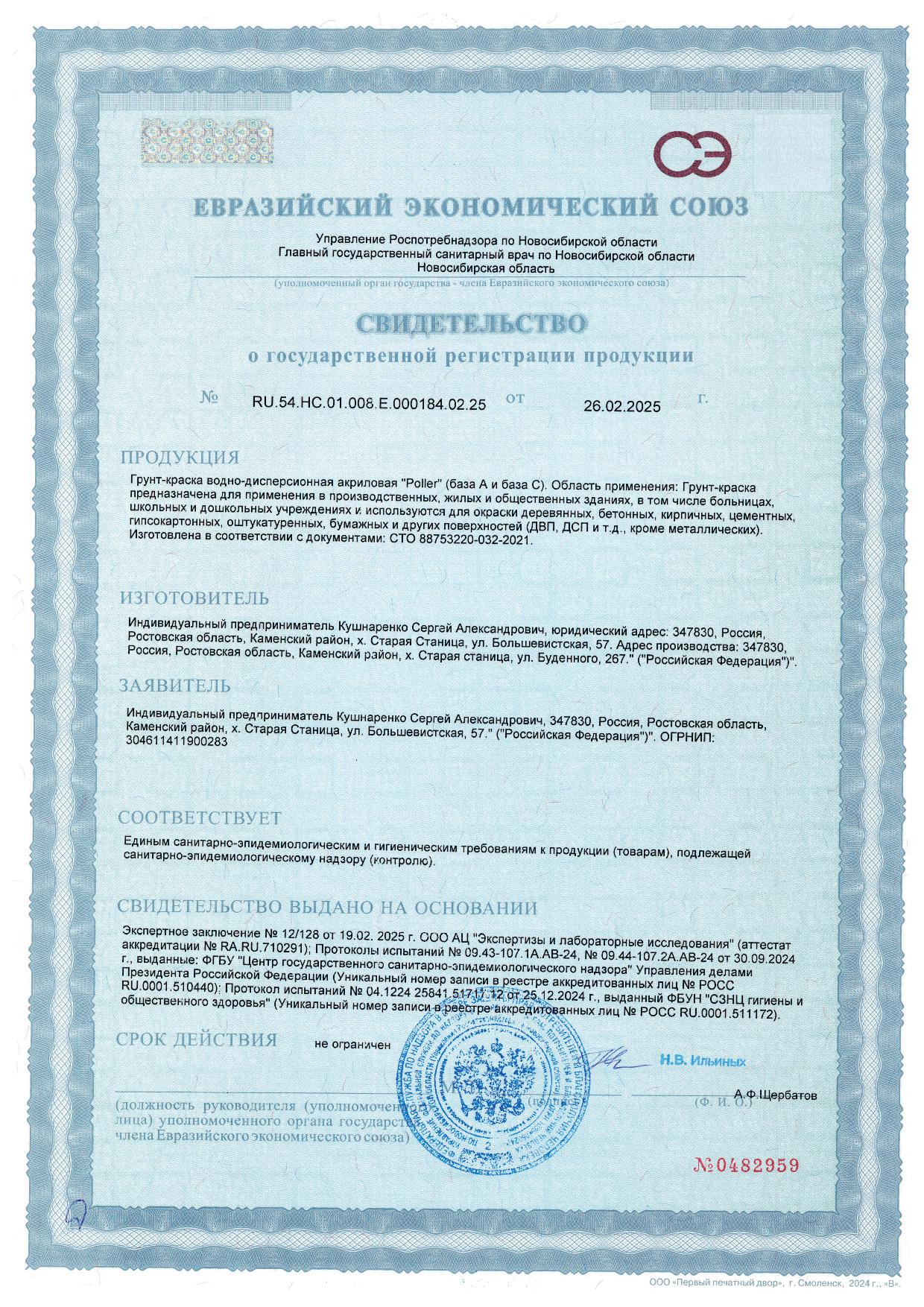 Грунт-краска адгезионная PRIMER PAINT Poller A.R.T. белая база А 0,8л