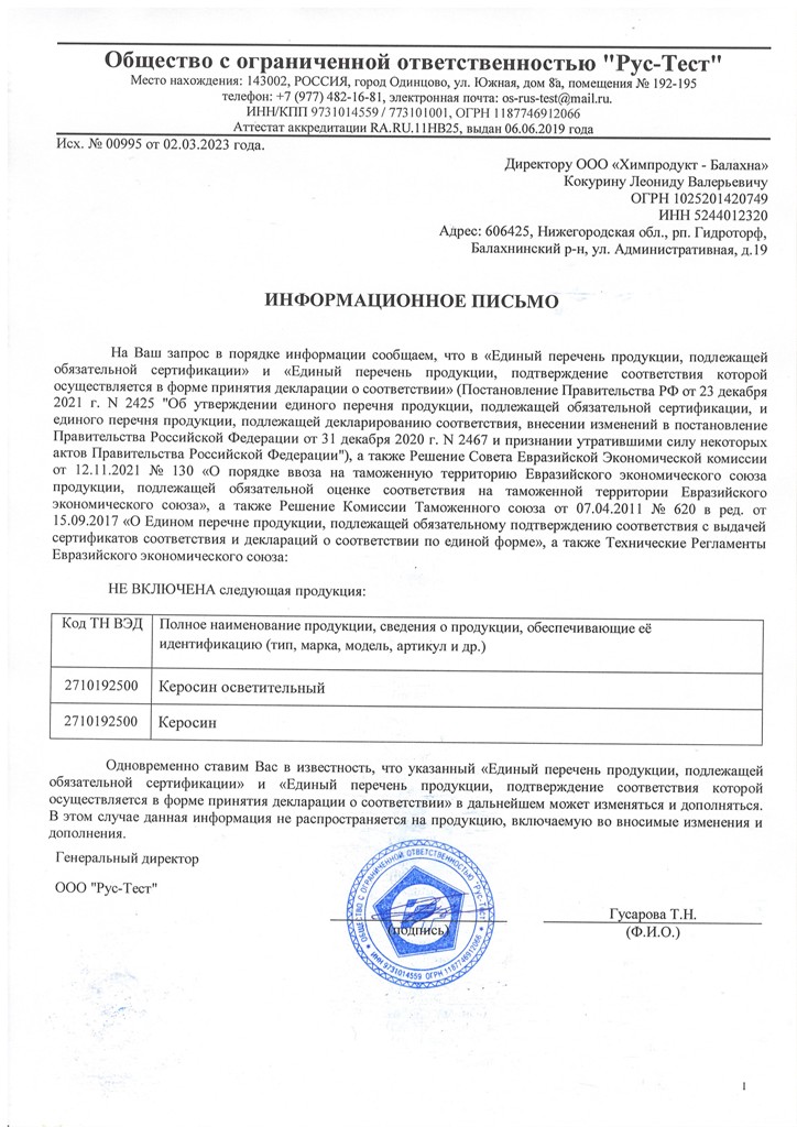 Керосин НХП 1л ПЭТ (ТУ)