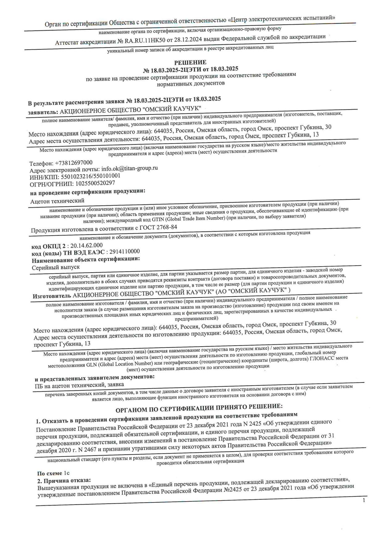 Ацетон НХП технический 1л/0,7кг ПНД (ГОСТ 2768-84)