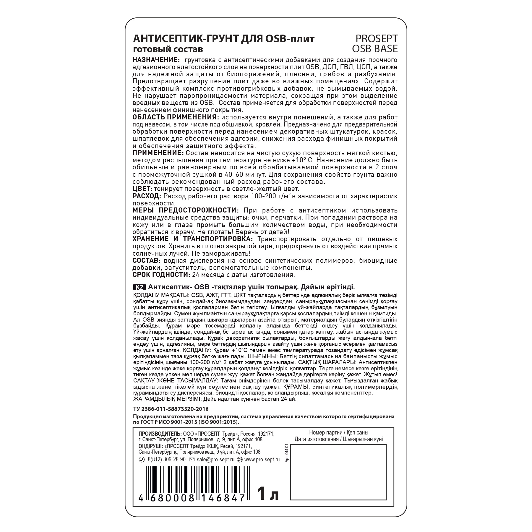 Просепт PROSEPT OSB BASE антисептик-грунт для плит OSB, готовый состав 1л (неморозостойкий)