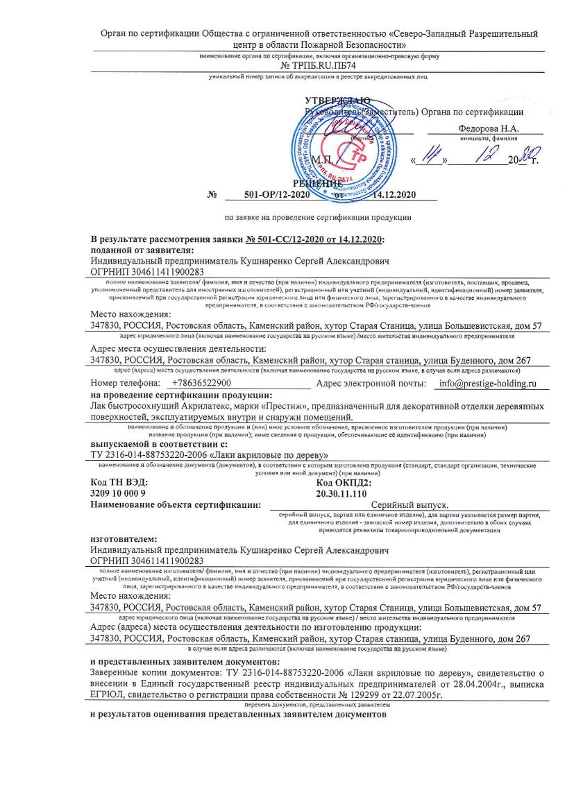 Лак ПРЕСТИЖ по дереву Акрилатекс быстросохнущий полуглянцевый 0,9л