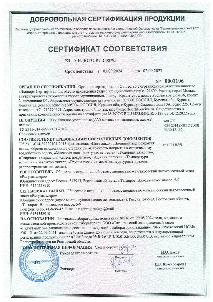 Лак яхтный РАДУГАМАЛЕР алкидно-уретановый матовый 6л