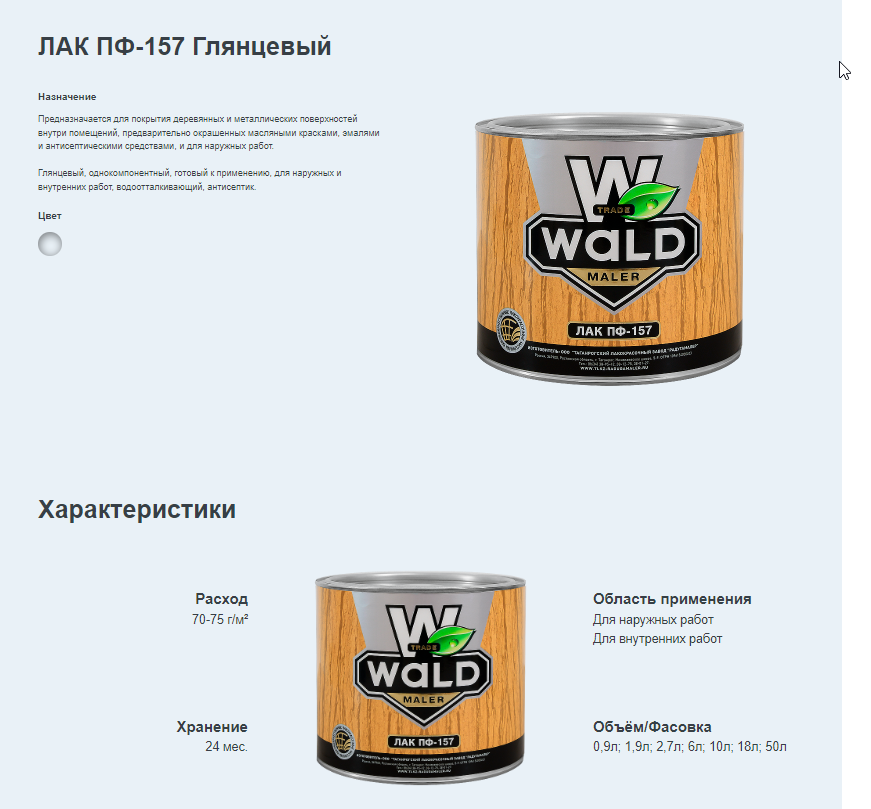 Лак Wald Maler ПФ-157 высокоглянцевый универсальный 1,9л