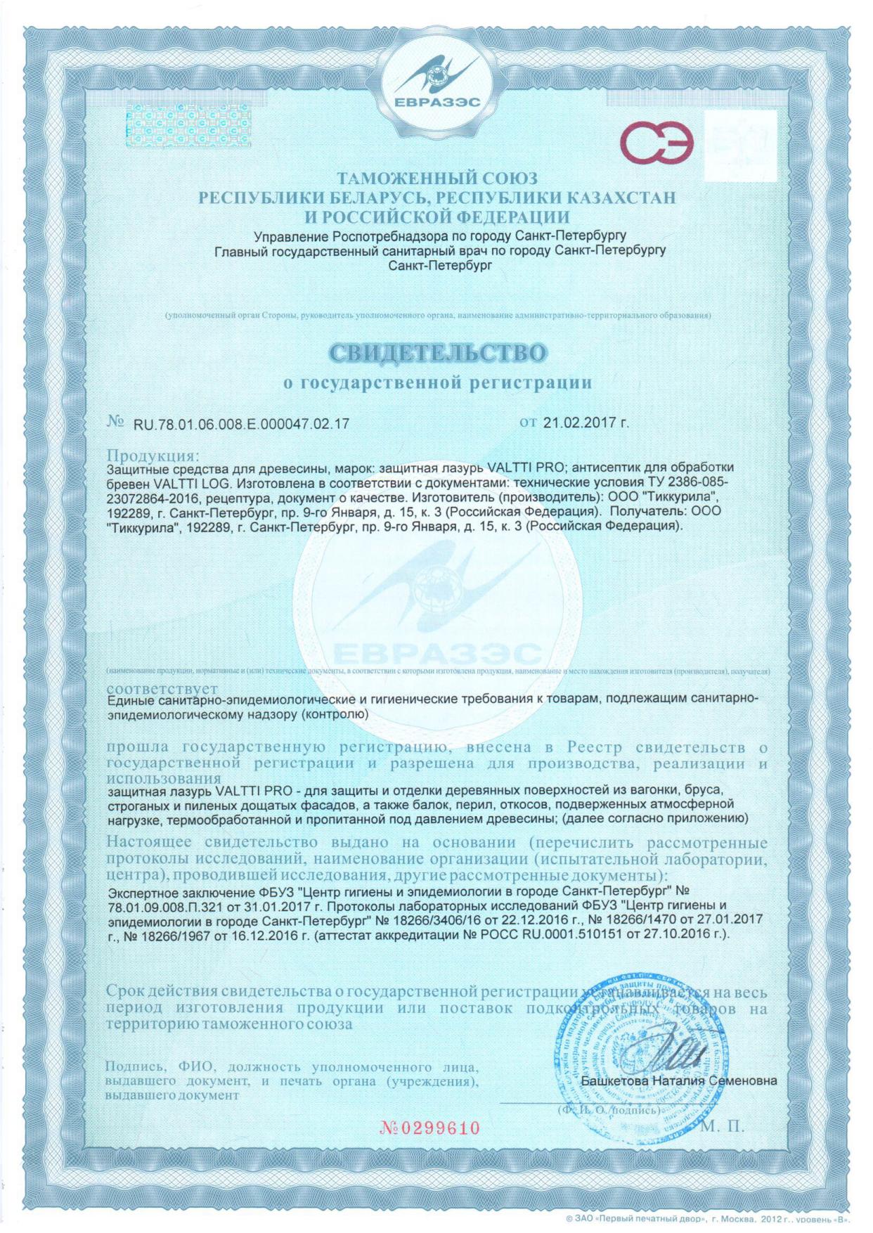 Антисептик TIKKURILA лессирующий VALTTI LOG база EC бесцветный 2,7л
