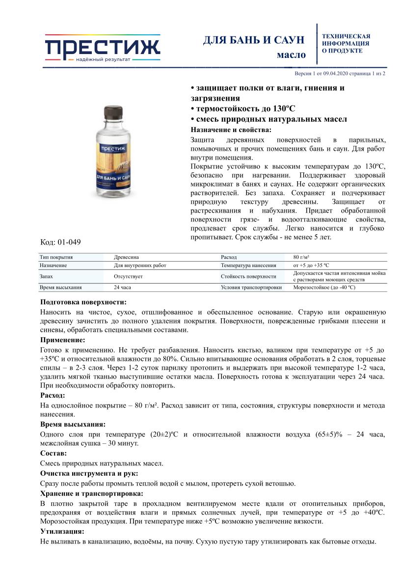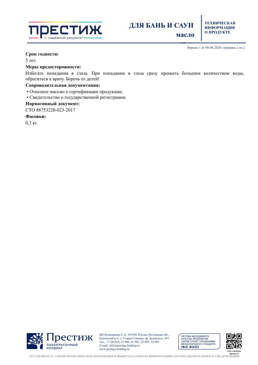 Масло для бань и саун ПРЕСТИЖ 250мл