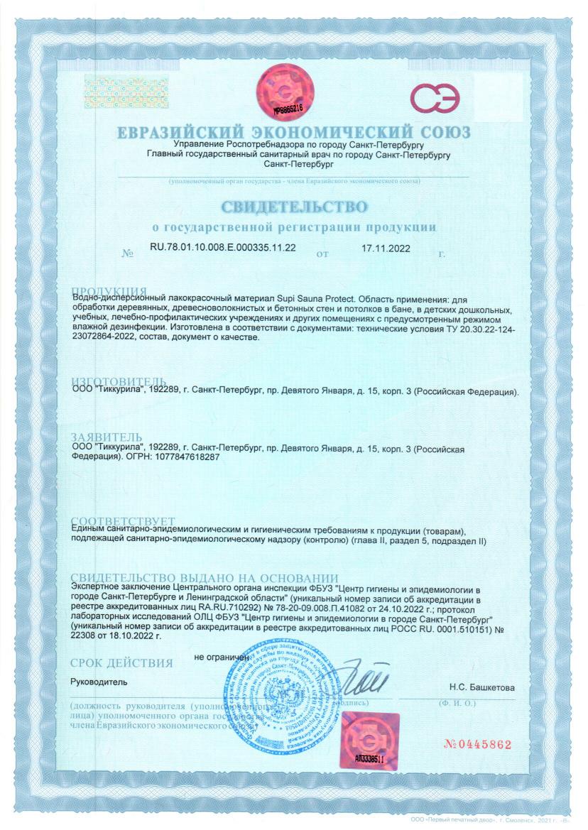 Состав для сауны термостойкий TIKKIVALA SUPI SAUNA PROTECT полуматовый база EP 0,9л