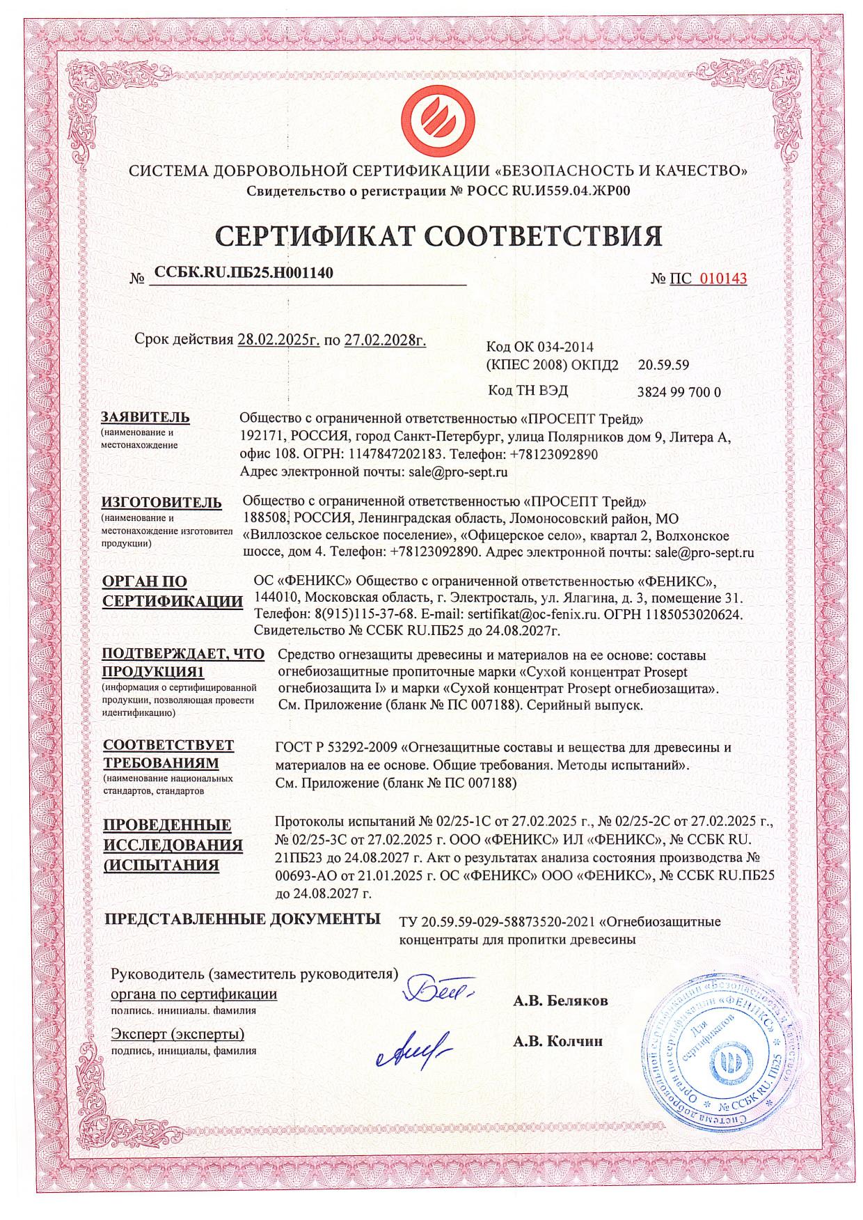 Огнебиозащита Просепт ОГНЕБИО PROF 1 1-я группа сухой концентрат 16кг бум/мешок