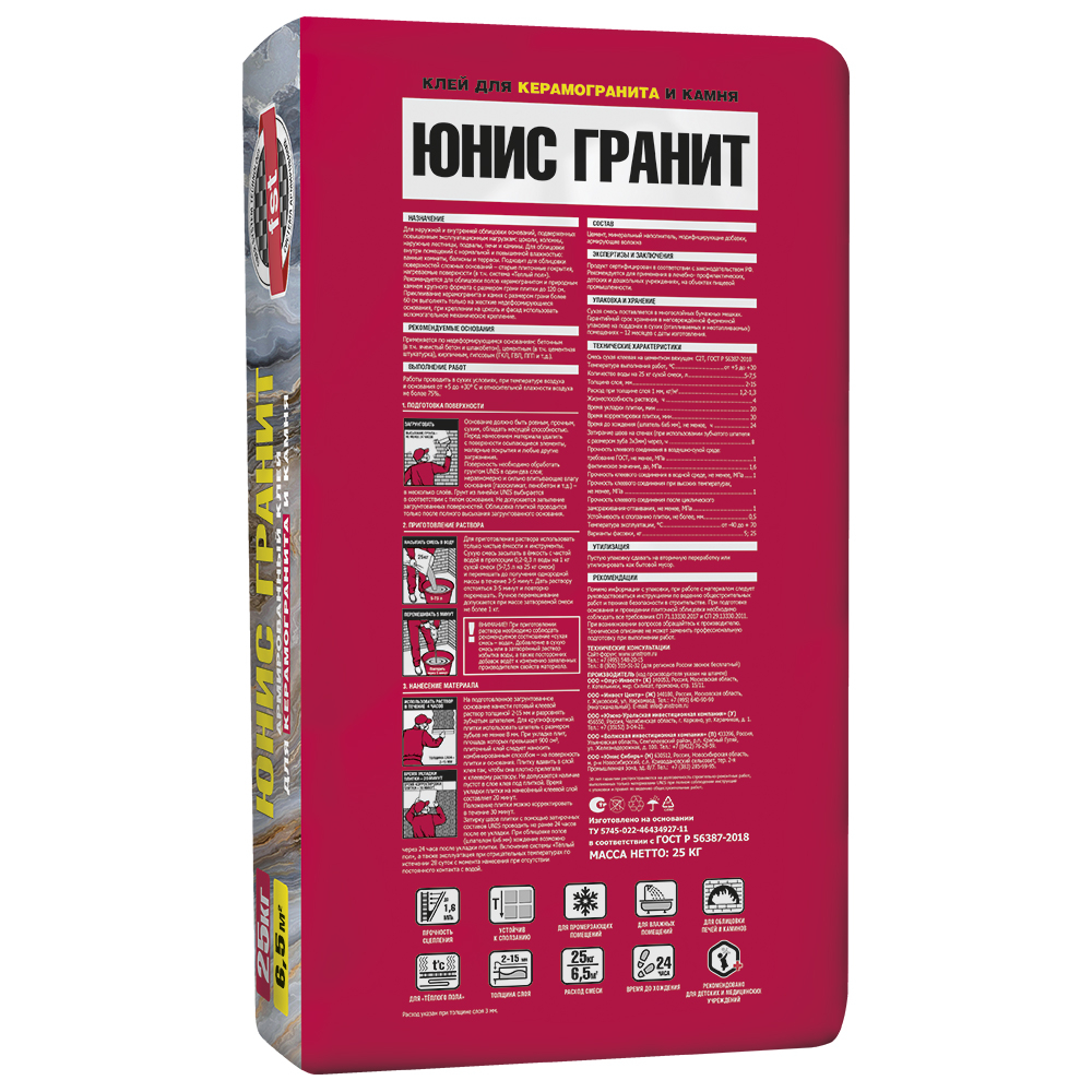 Клей плиточный Юнис Гранит 25кг