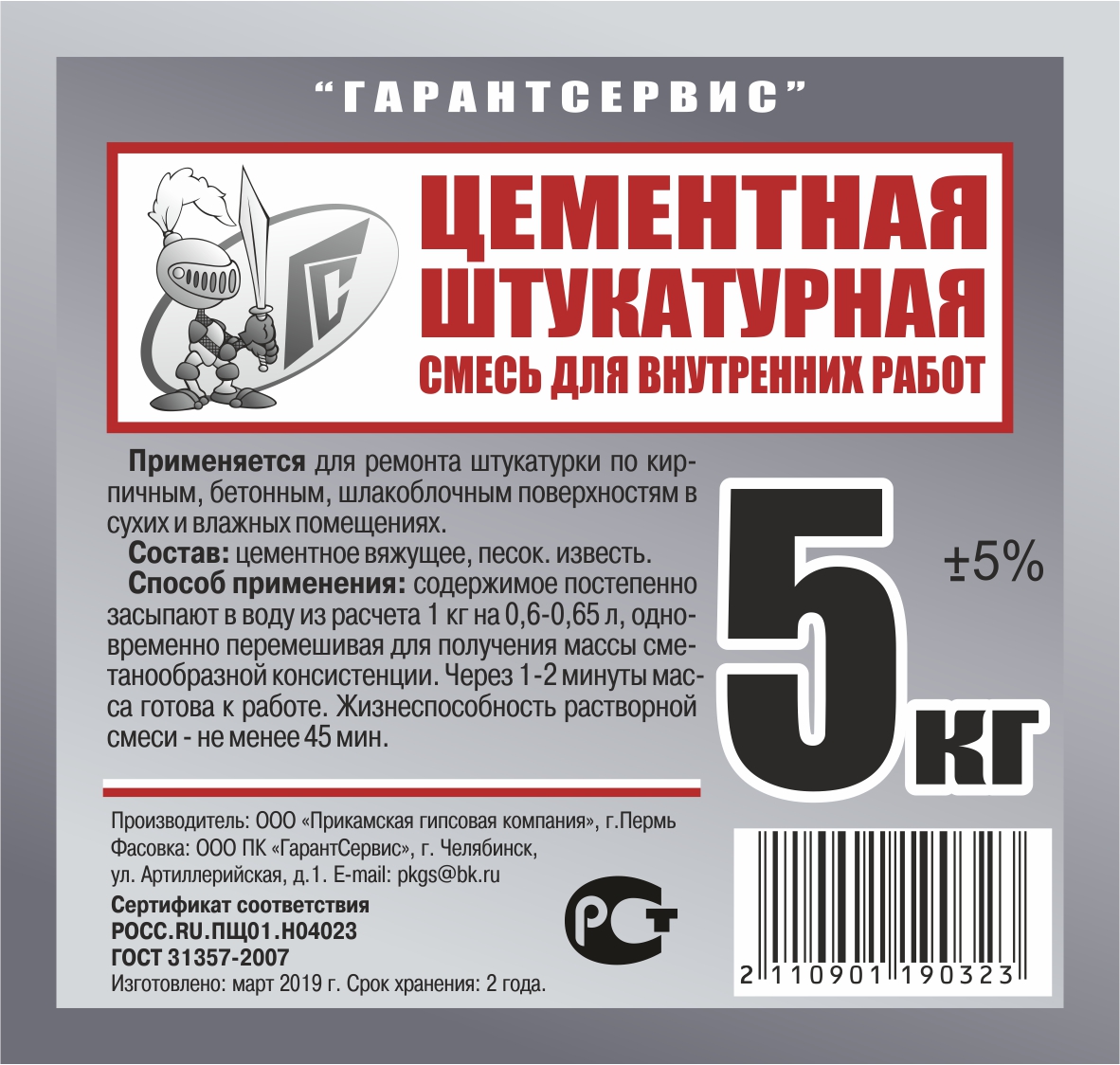 Штукатурная смесь цементная 5кг