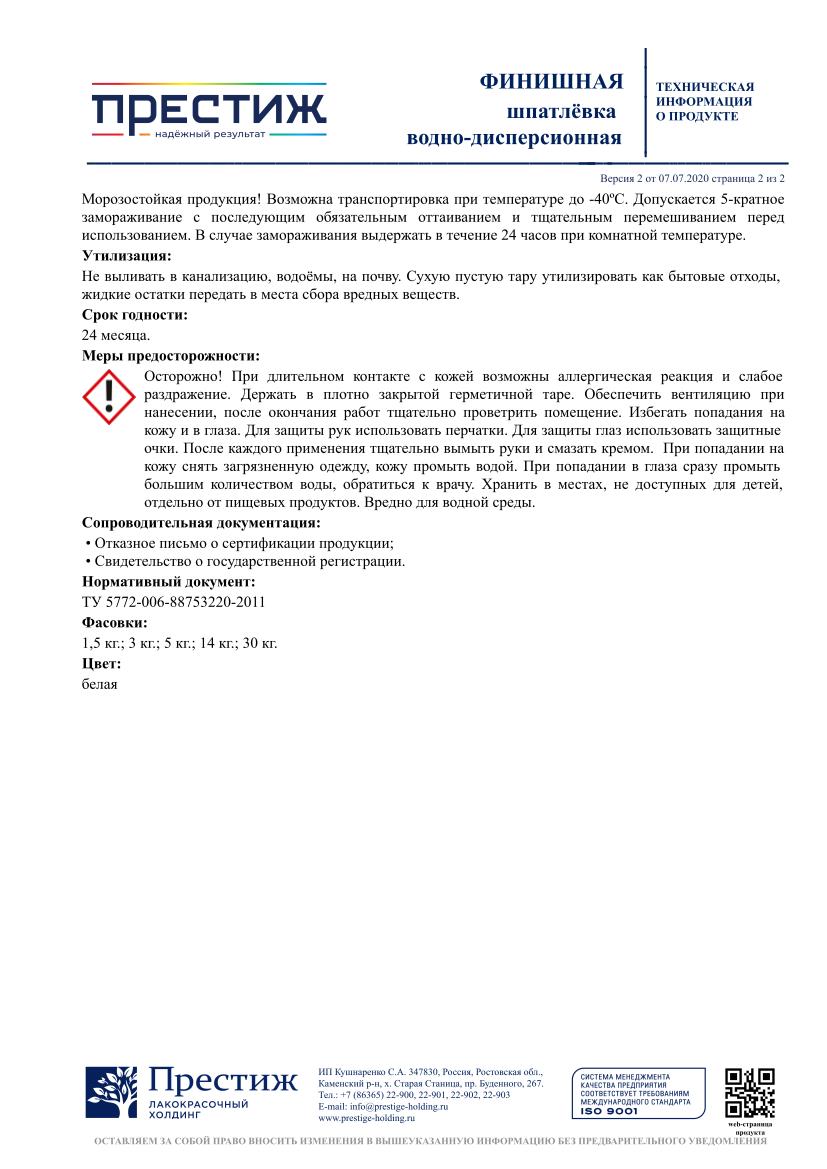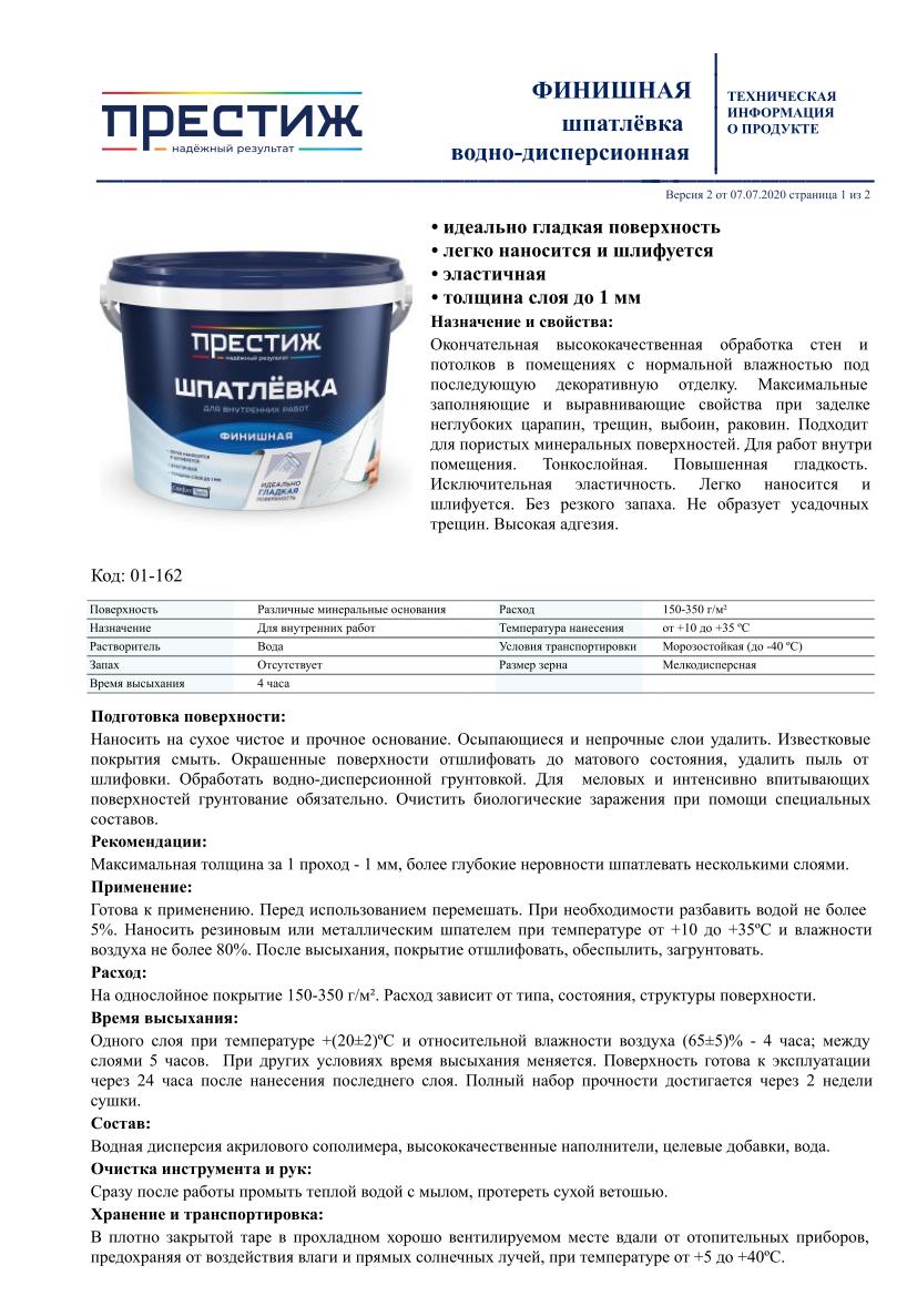Шпатлевка финишная ПРЕСТИЖ 1,5кг