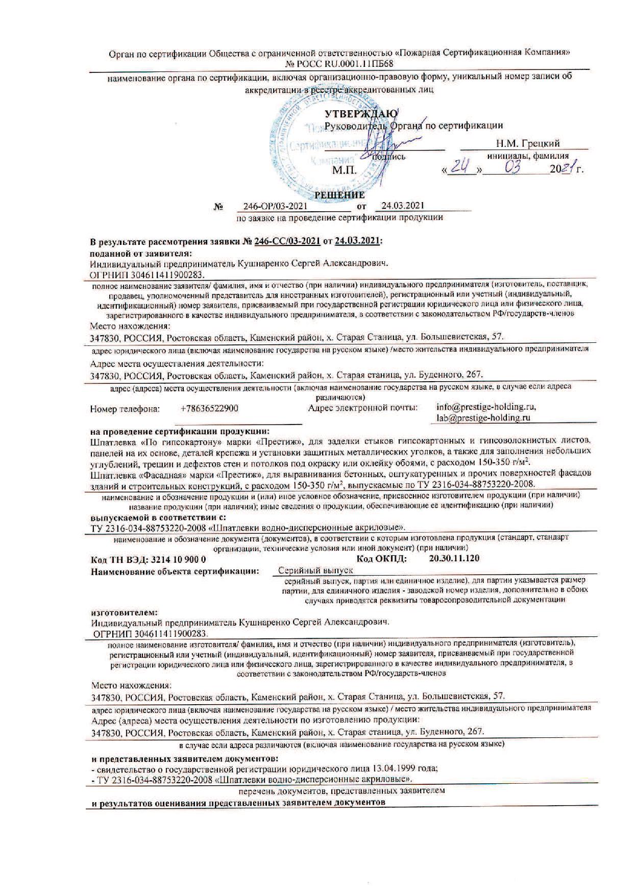 Шпатлевка фасадная ПРЕСТИЖ 3кг