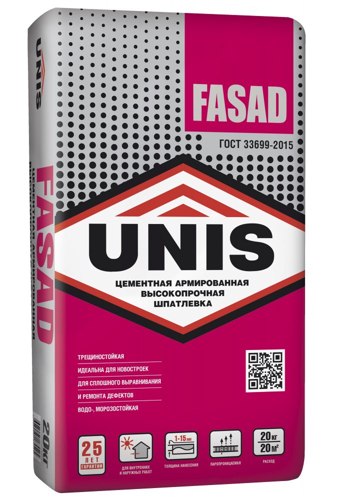 Шпатлевка цементная Юнис Фасад серый 20кг