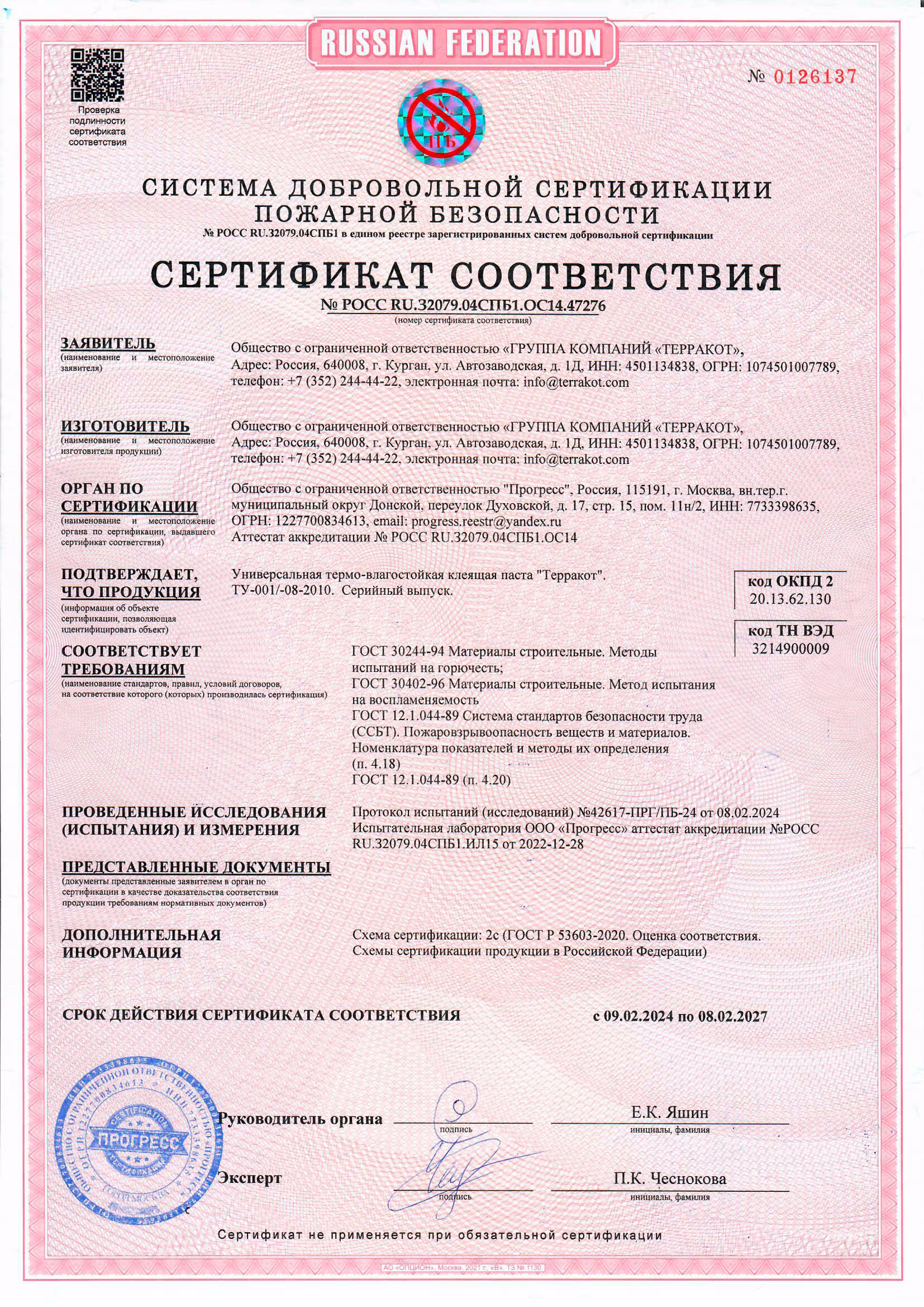 Сухая смесь "Терракот" клей усиленный жаростойкий 5кг