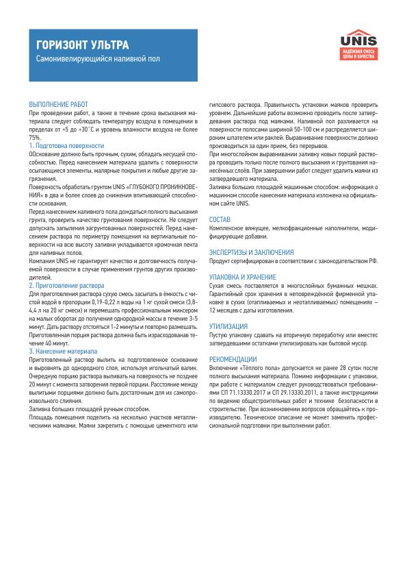 Наливной пол Юнис Горизонт Ультра самонивелирующийся 23 кг