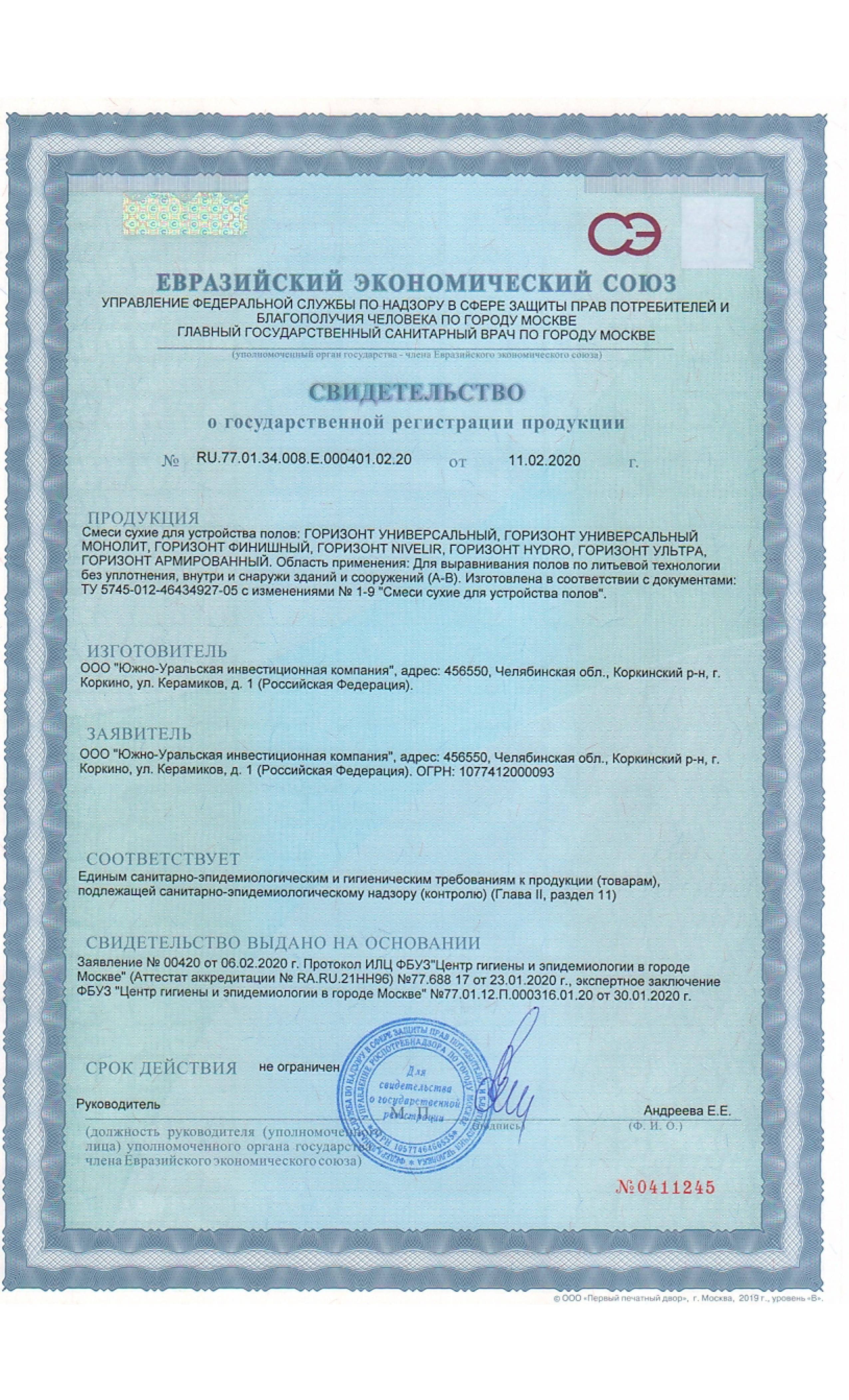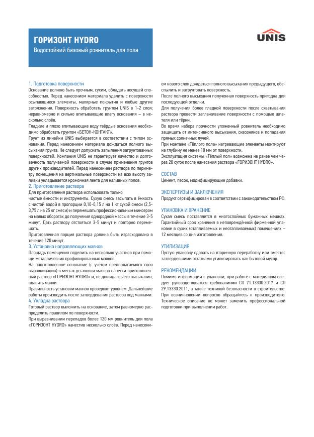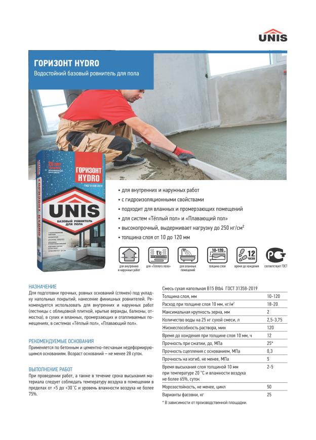 Ровнитель для пола Юнис Горизонт HIDRO 25 кг