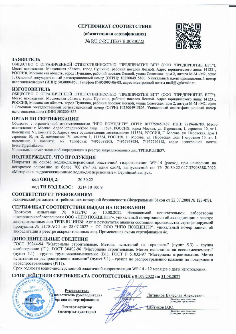 Гидроизоляция эластичная VGT WP-14 1,3 кг