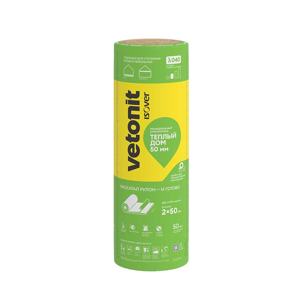 Утеплитель Vetonit (Isover) Теплый Дом Твин 50х1220х7000 (уп 17,08м2/0,854м3) рулон