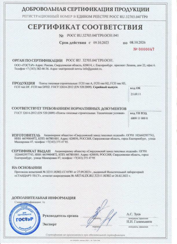 Гипсокартон GIFAS 2500х1200х9,5мм (65) ГКЛ